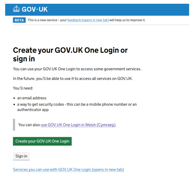 - Set up your GOV.UK One Login: