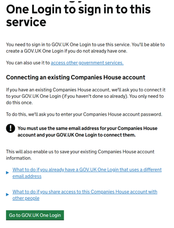 Create your personal One login with Companies House