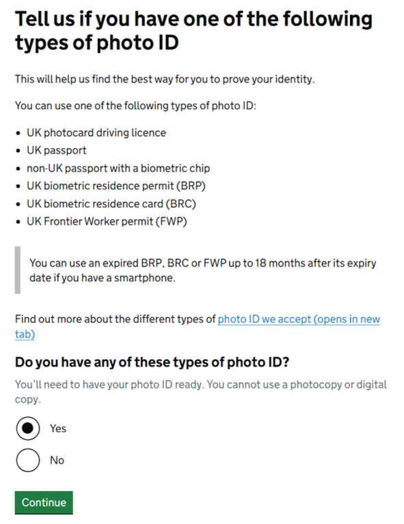 6. You will then be asked what Photo ID you have available.