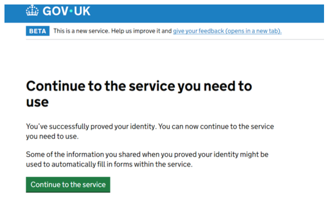 8. Once you have verified your identity, click ‘continue to the service’